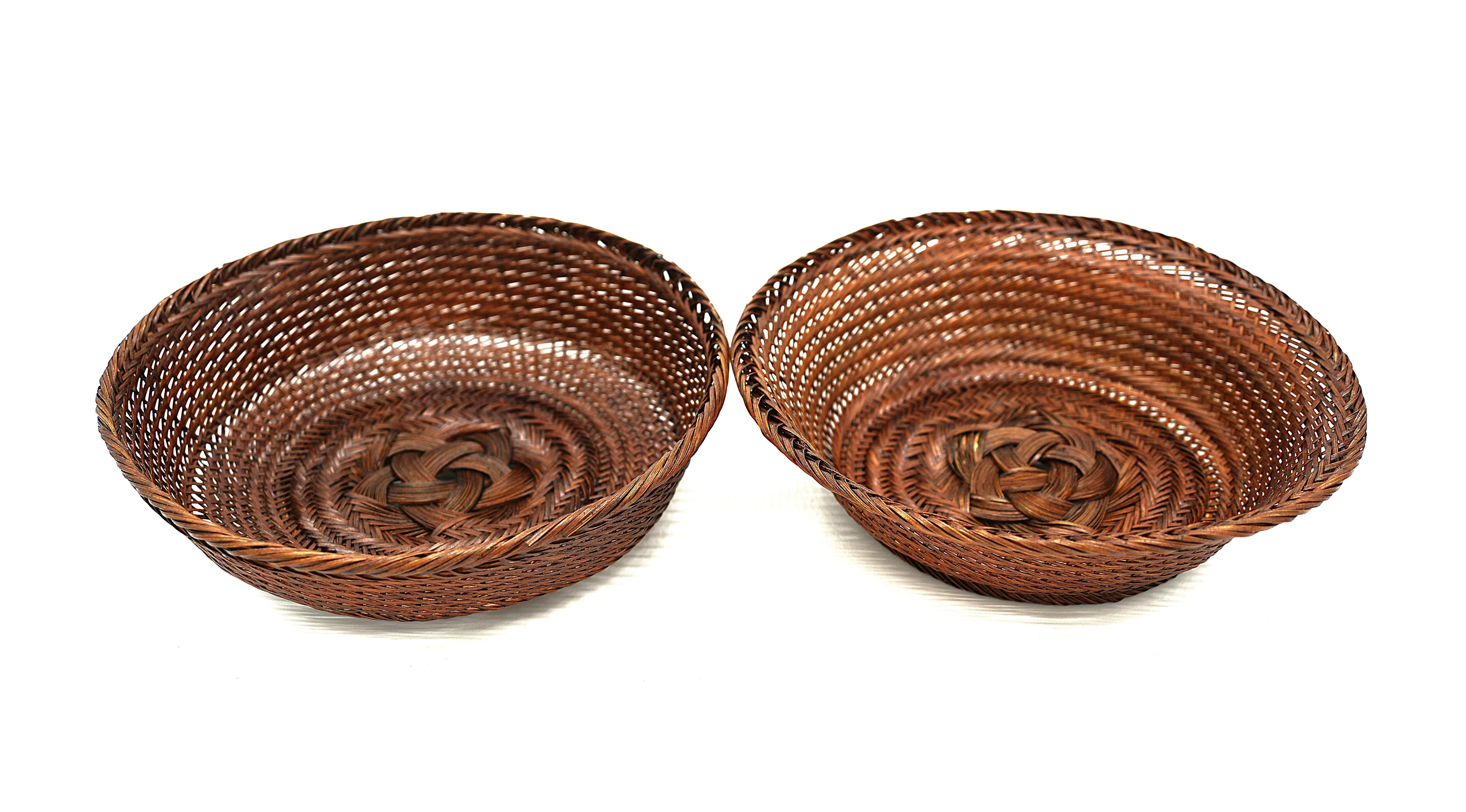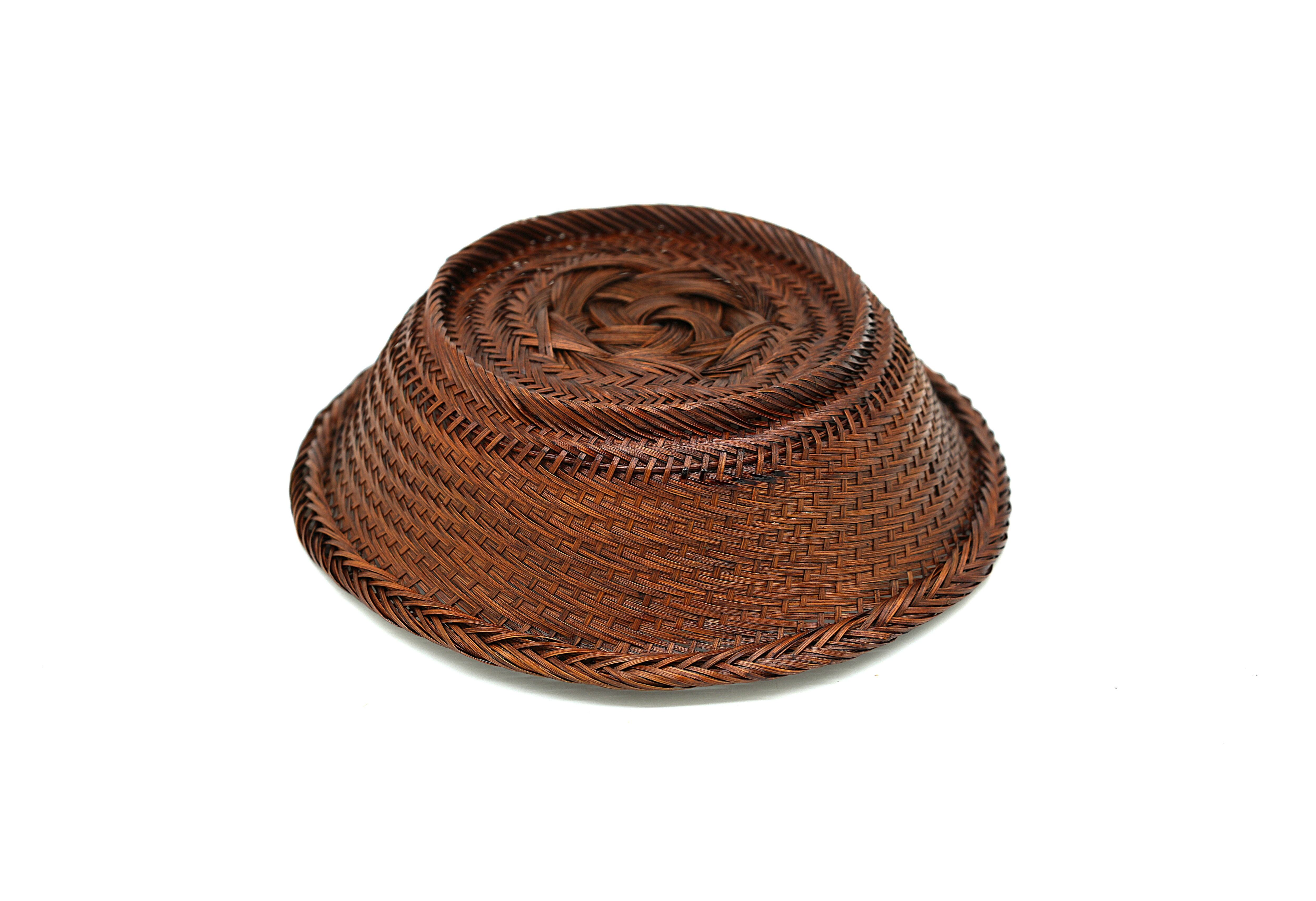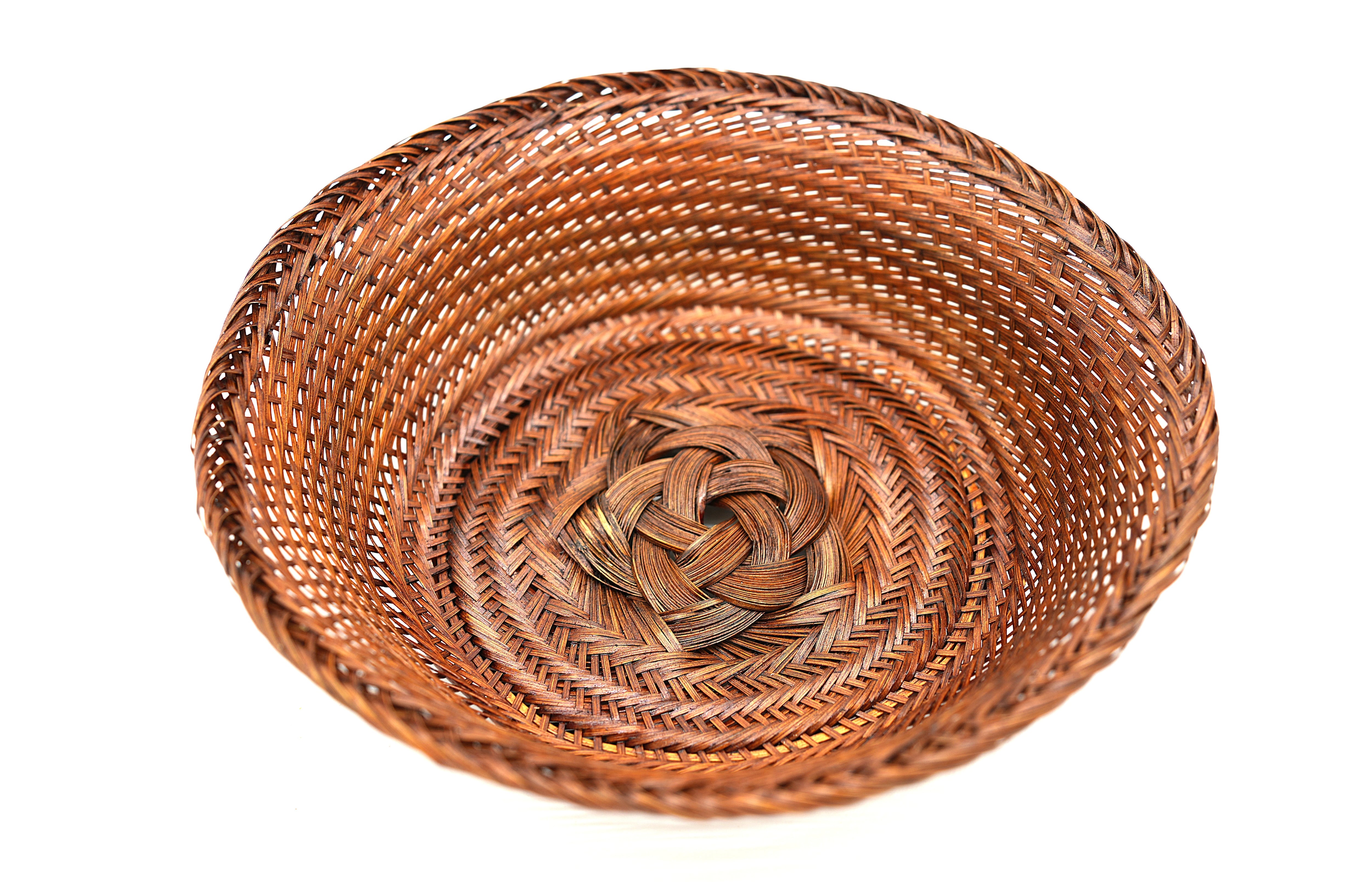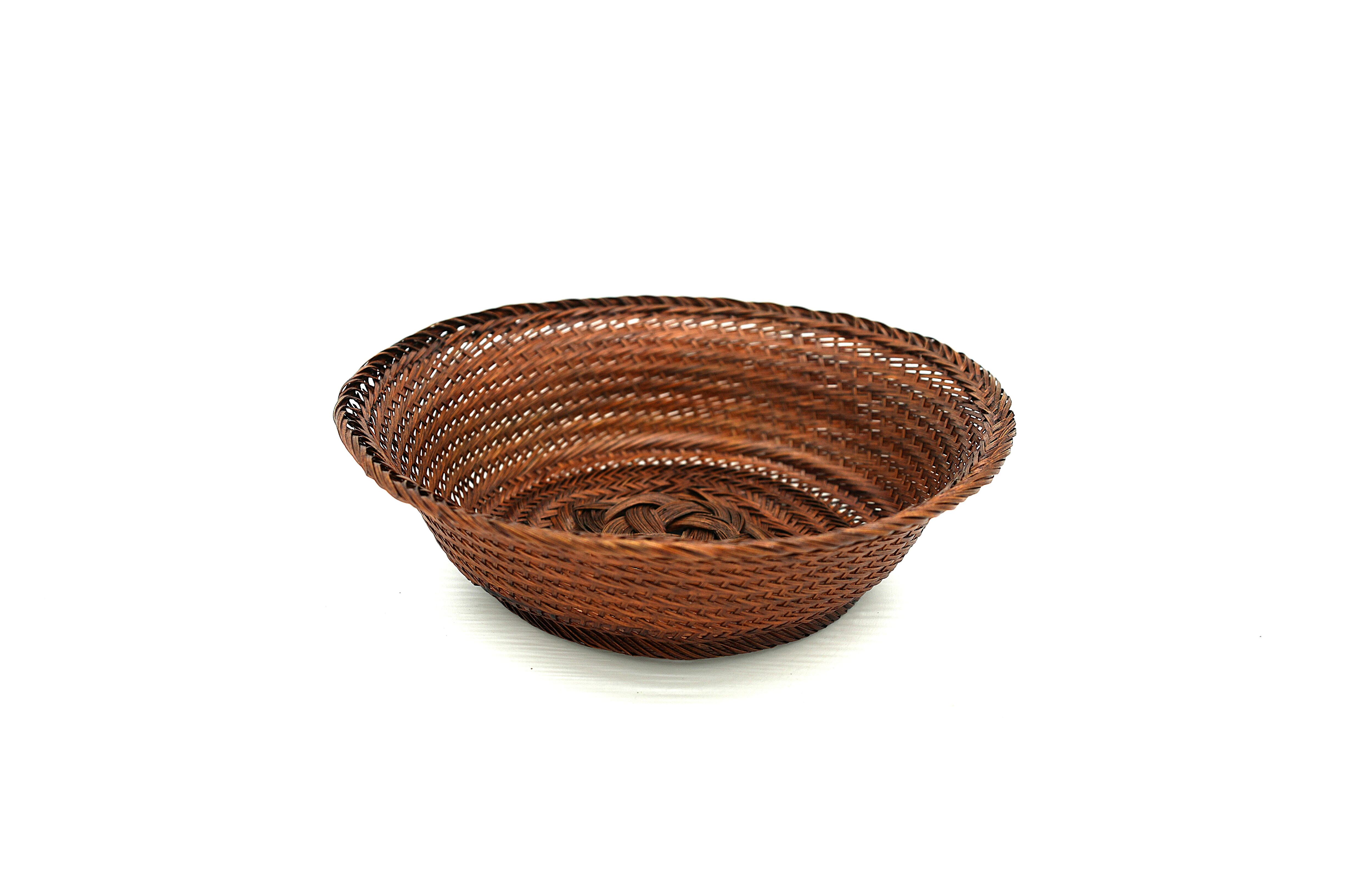 This is a natural material bowl that blends into any scene, whether Western-style, Japanese-style, or café-style. It is a versatile bowl that can be used to display anything, from sweets to fruits, depending on the user's ideas. Why not bring a subtle sense of quality into your daily life? The finish is made with lacquer from Uenomura, giving it an elegant color. Lacquer has antiseptic properties, making it perfect for use with food. Although the weaving and making methods are the same for this product, there are slight design differences, such as the shape of the base, so please choose the one you prefer when ordering. Please look at the photo displayed at the very end and let us know which design you like. ※ Each piece is handmade from natural materials, so there may be slight size variations. Also, due to the nature of lacquer, please avoid using it over direct heat or in an oven. This product can be custom-sized and repaired. Size: circumference 24 cm × height 6.5 cm.