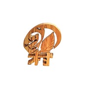 Inspired by the precious Shioji tree native to Ueno Village, we cut out and carved the letters of 'Ueno Village' and fused them together in a rounded style. We placed the characters for 'Ueno' and the leaves of the Shioji tree in the center.