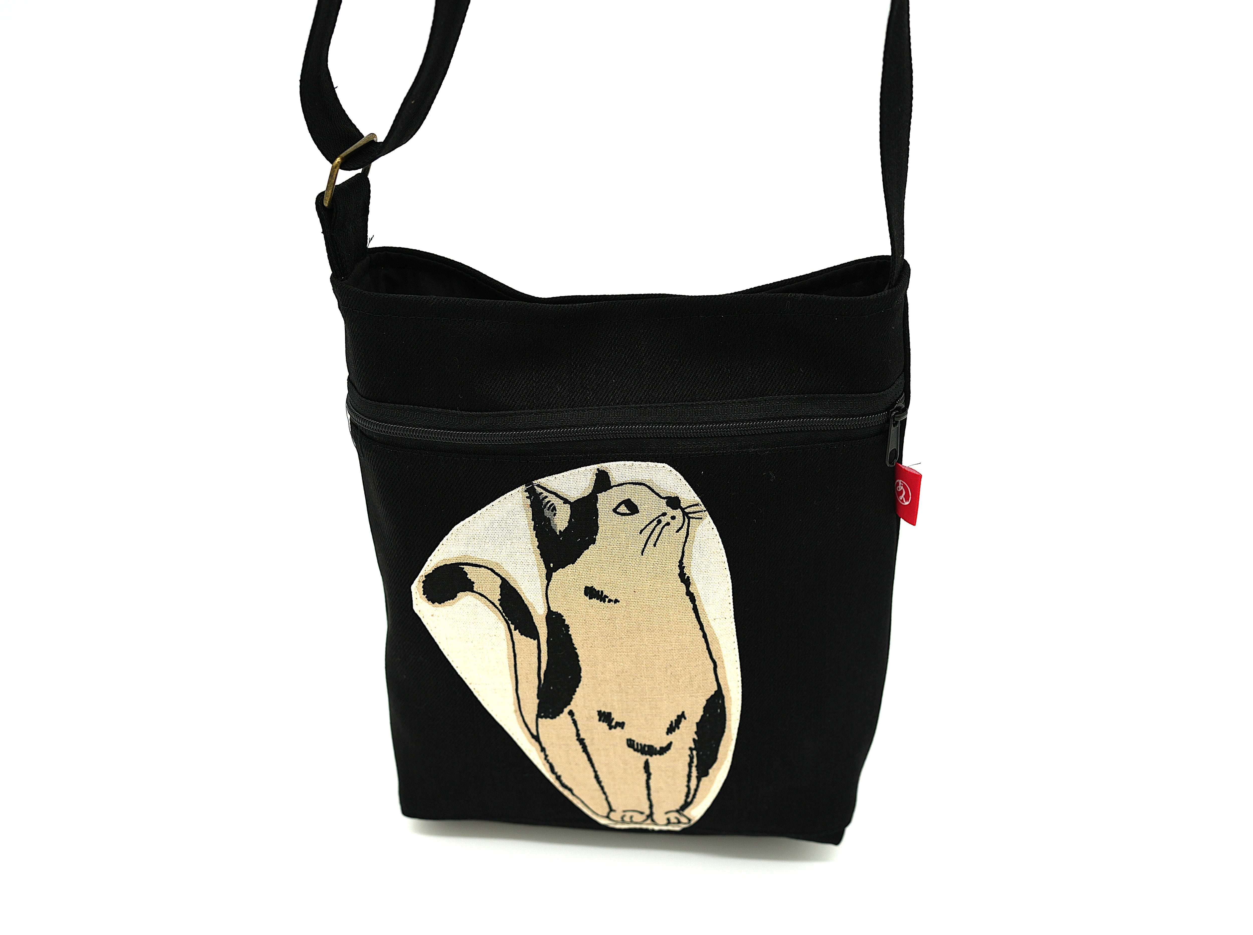 そっぽ向きネコ柄ショルダー/Side-glancing cat pattern shoulder bag