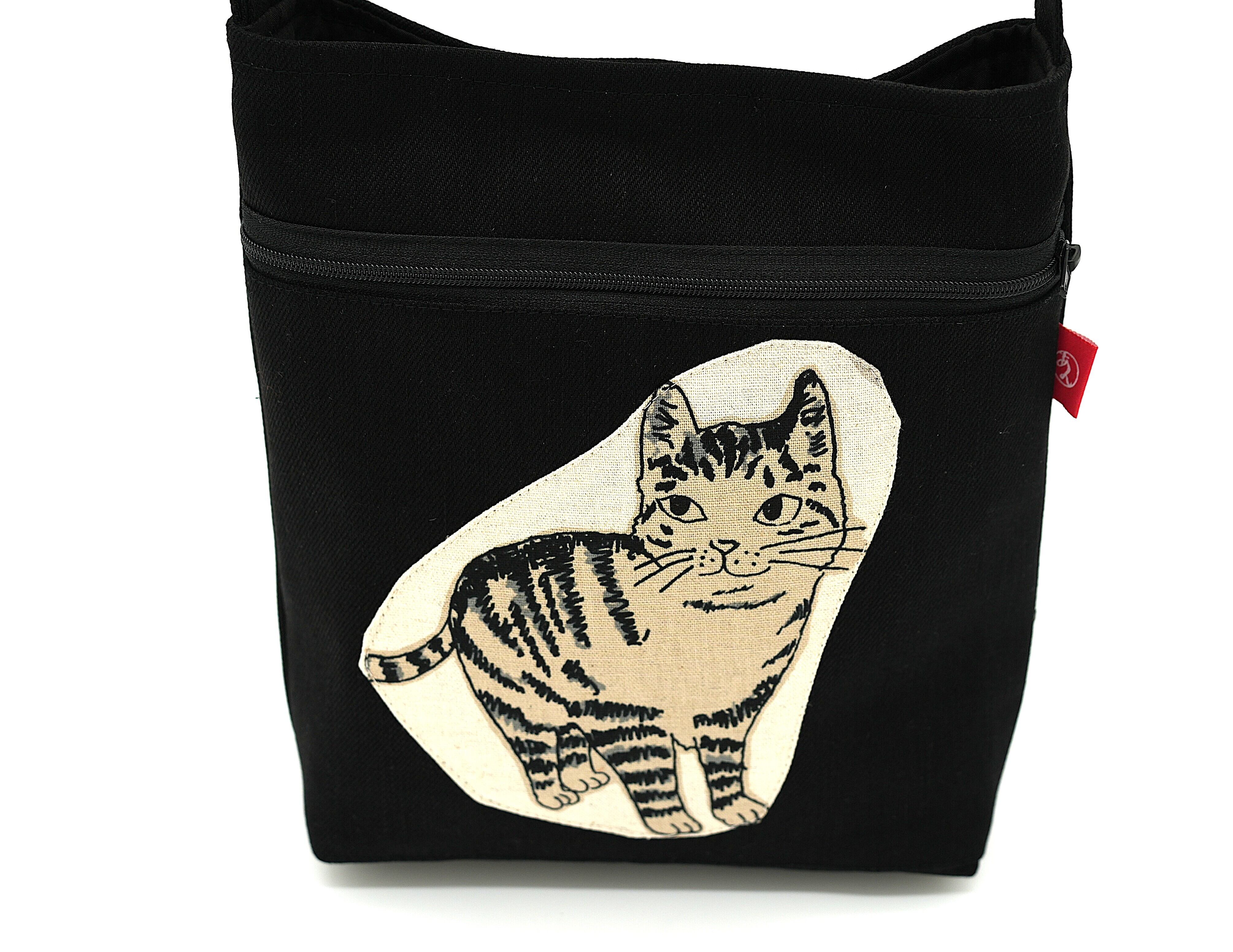 This is a shoulder bag with a cat-patterned design and an indescribably charming, composed face.