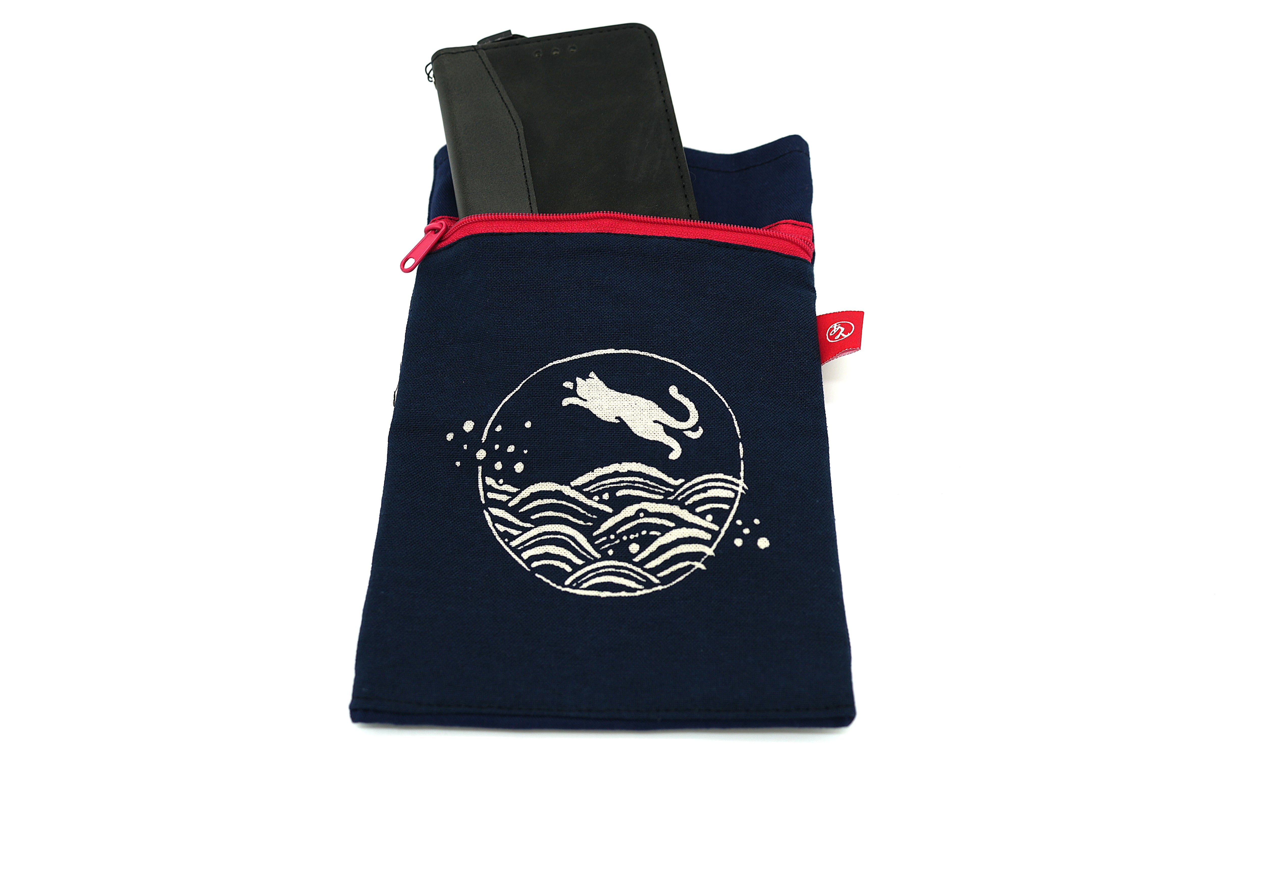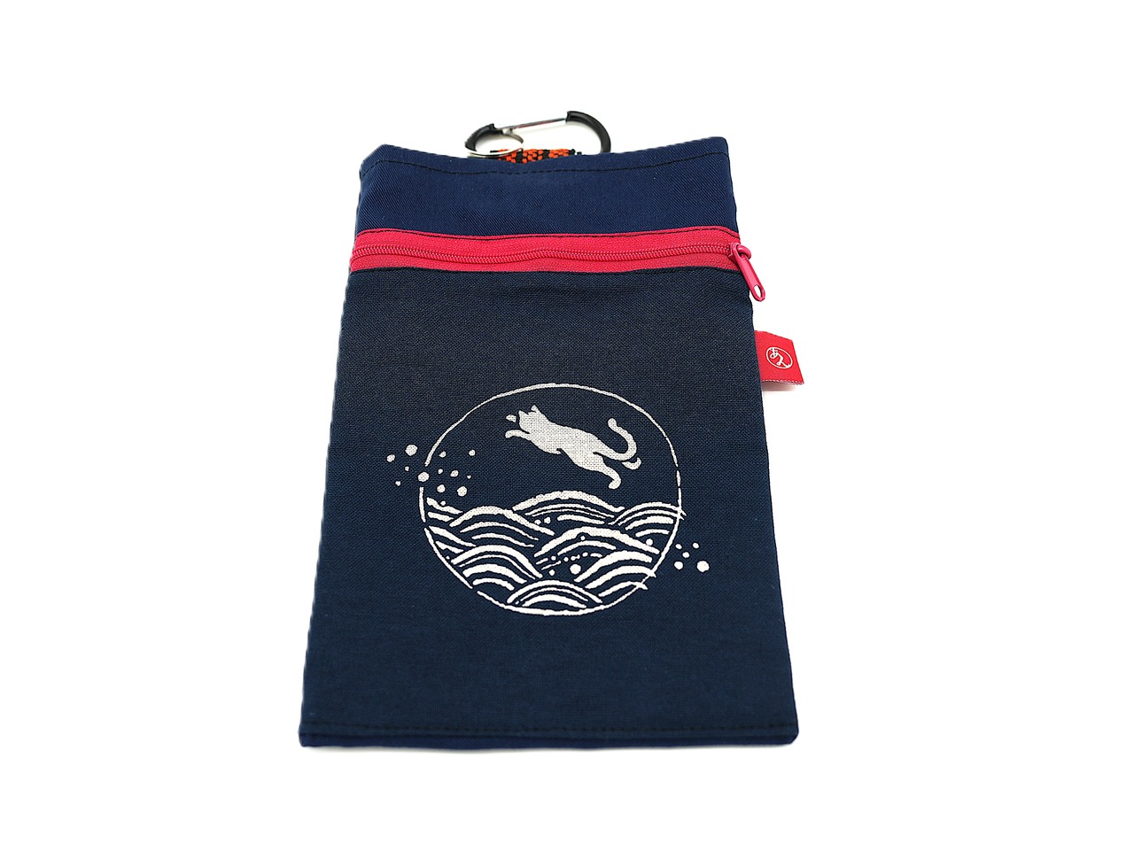 This is a smartphone case printed with a cat playing in water. It is a smartphone case of just the right size to carry only essentials such as your phone or wallet. A carabiner is also attached, so you can use it in various ways depending on your ideas, not only on a belt loop but also in a bag-in-bag. [Size] Height: approx. 20.5 cm × Width: approx. 14 cm × Depth: none; with carabiner.