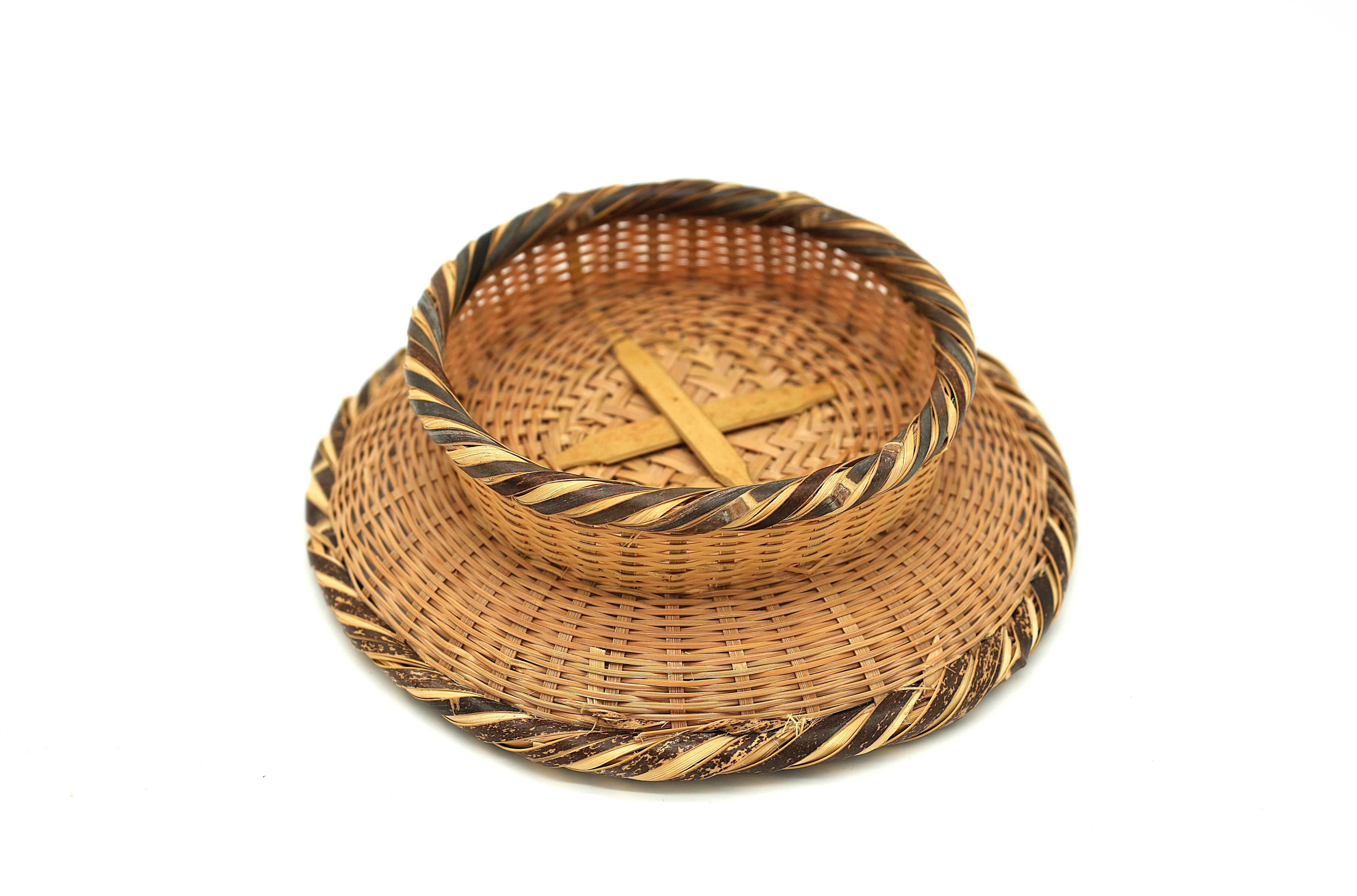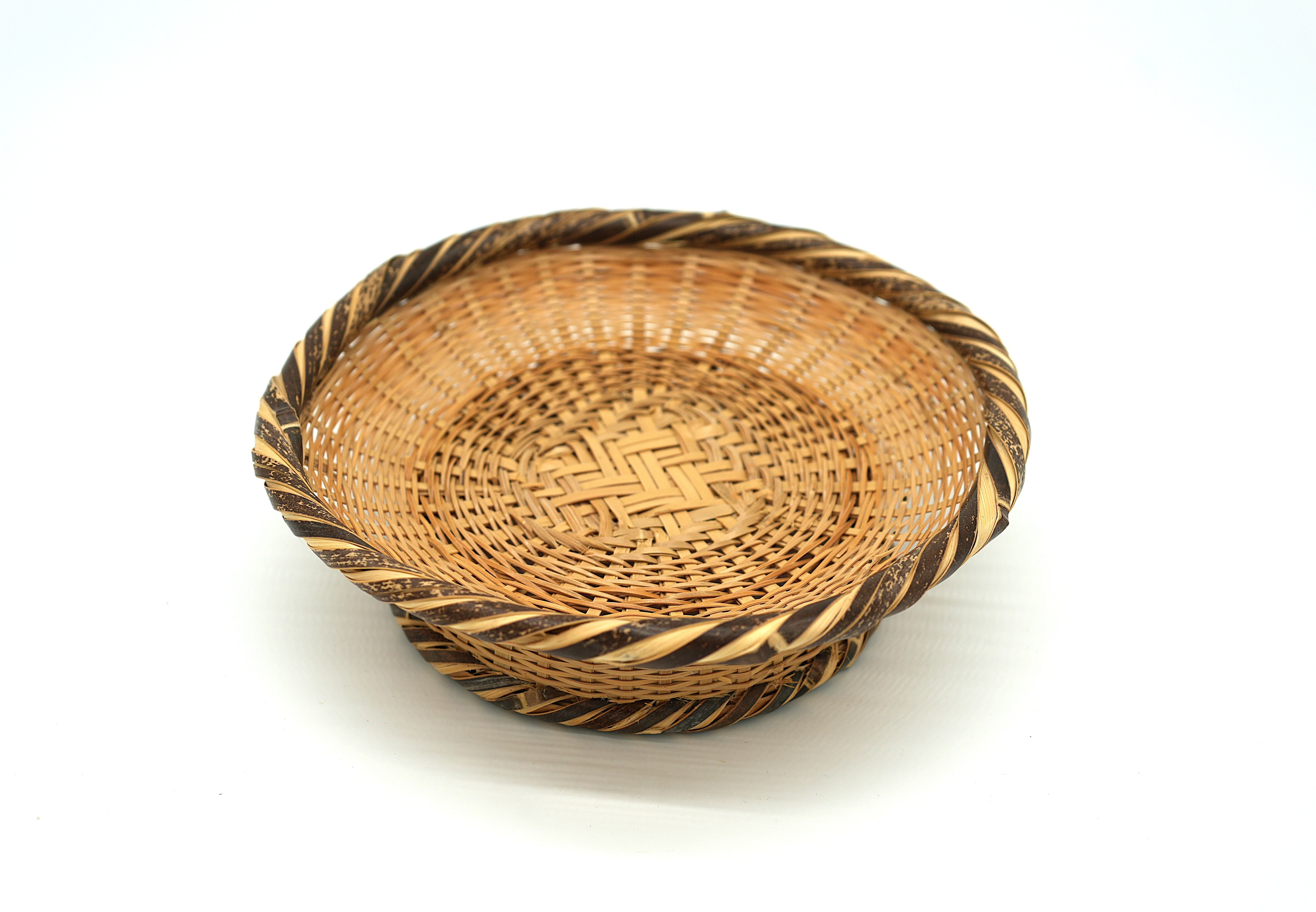 こちらの商品は一般的なざるとは異なり、高台が付いていることにより平面ではなく立体感をもって食材を魅せられるざるとなっております。麵だけでなく天ぷらなどにも相性が良いと思います。真竹をベースに周囲に黒竹を巻いたオリジナルデザインの高台付ざるになります。